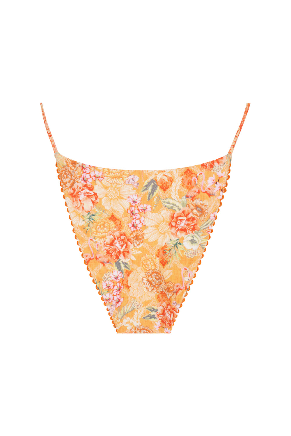 Delray Bikini Bottom in Tangello showcases a unique artisan hand-drawn print with a citrus and flamingo flare designed for standout summer moments.
